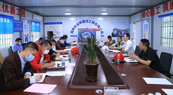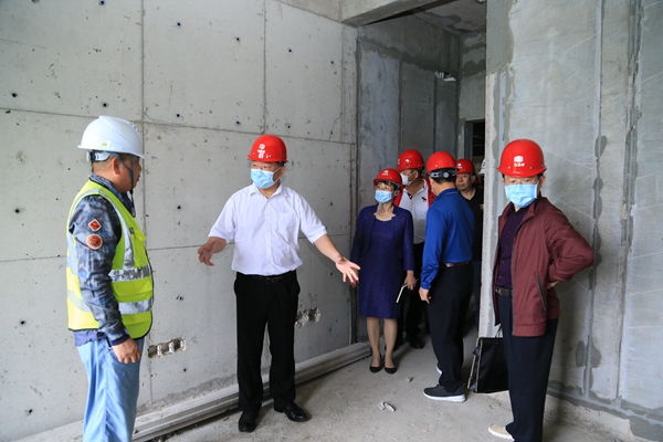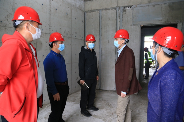2022年3月29日,太阳集团tyc5997党委副书记、院长黄景贵,党委委员、副院长陈修焕,党委委员、纪委书记、监察专员符史杭一行来到留学生教育综合楼项目施工现场,对项目进度、质量和安全等基本建设情况进行调研。