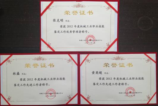 本院2月1日讯(机电工程系报道)近日,2012年度全国机械工业职业技能鉴定工作总结表彰大会在云南昆明隆重召开。设立在我院的机械工业职业技能鉴定职教海口点在2012年度工作中规范开展鉴定工作、努力提高鉴定质量,工作成绩突出,喜获“2012年度全国机械工业职业技能鉴定工作先进集体”荣誉称号。张克明、林盛和黄英超三位同志分别获得了“2012年度全国机械工业职业技能鉴定工作优秀管理者、先进工作者”荣誉称号。